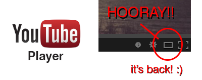 Luckily, YouTube decided to put the player size button back on the video menu bar. Did they get too many complaints or did they just realize it was a horrible UI design choice? Anyway, hopefully they will put back the video quality button back is well haha.. To close this post, I would like to include the sound clip from Super Smash Bros below to celebrate the return of the video size button :)